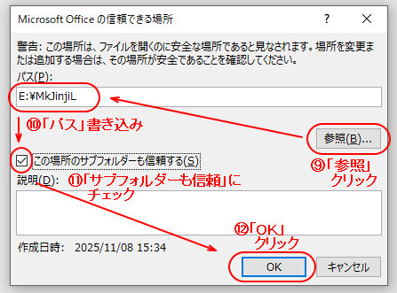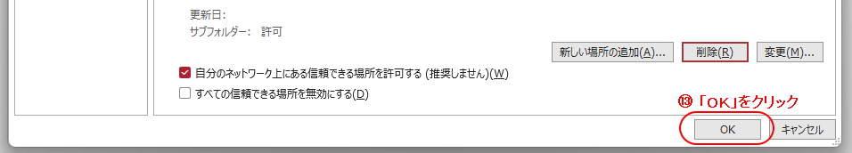 「トラストセンター」画面に戻ります。 目的のフォルダがリストに入ったのを確かめた後で、仕上げに[OK]ボタンをクリックします。 |